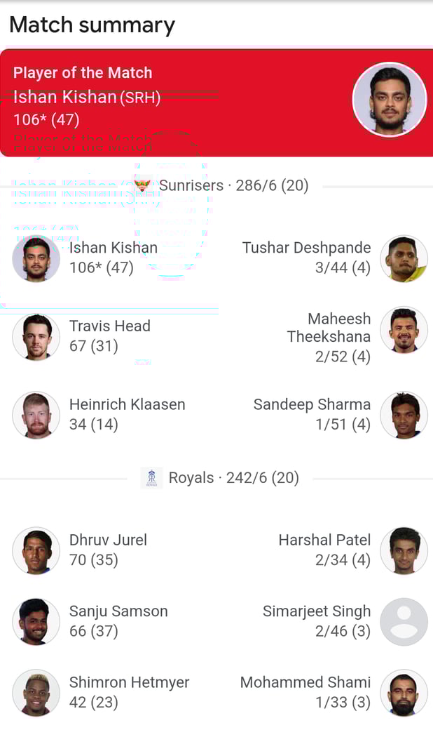 Match Overview: SRH vs RR